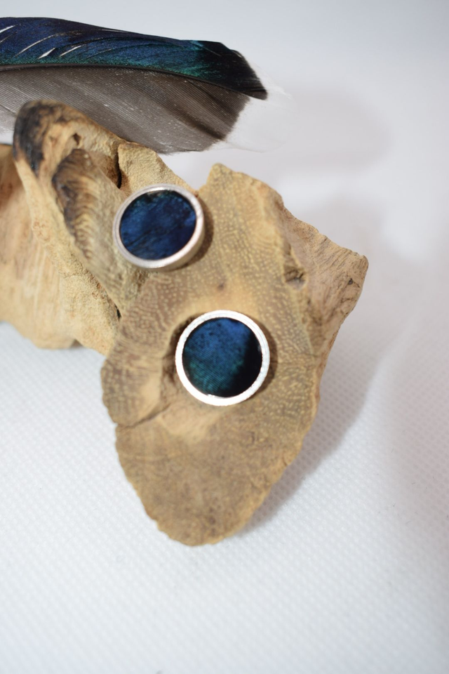 Leur forme ronde et minimaliste met en valeur les reflets profonds des plumes, aux nuances de bleu et de vert irisé. Fines et graphiques, elles sont aussi confortables que raffinées.