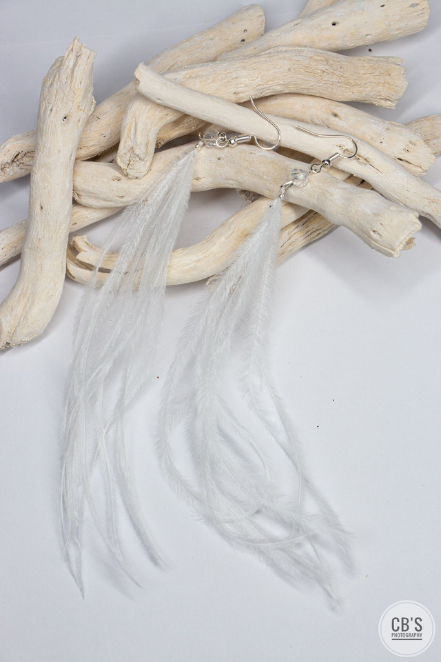 Boucles d'oreilles en plumes d'autruche blanches